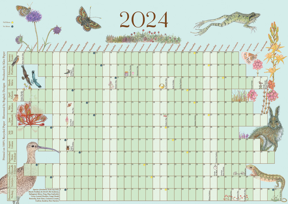 Peatlands Wallplanner. I designed this for Klee Paper (ecoland.com) who produce a wallplanner each year. I don't sell these but you can buy them from Klee here, and also order them in bulk with your organisation's logo: https://ecoland.com/2/384/#PROD3703