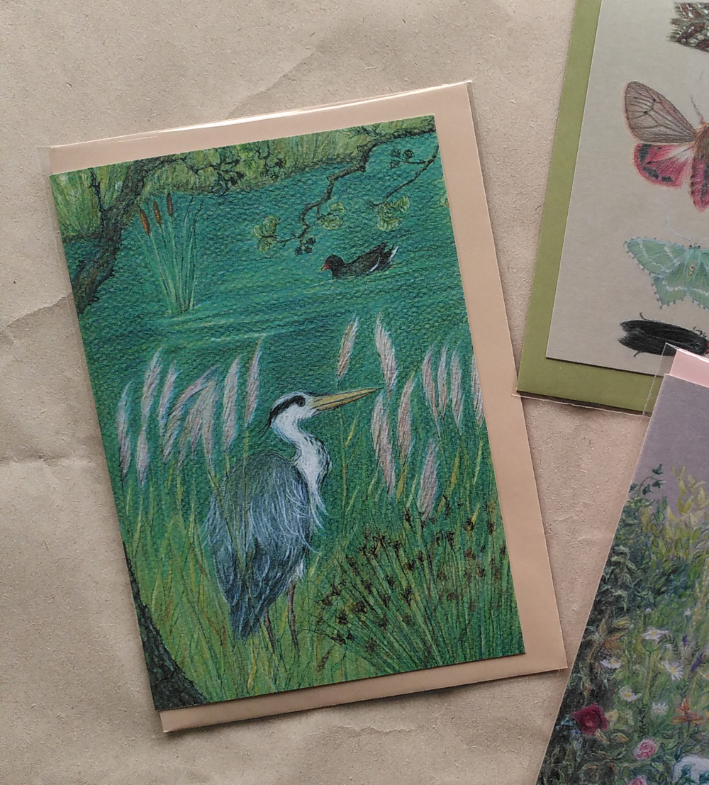 This Grey Heron isn't a new design but it's a new print of it, which I just love. It's hard to describe the colour of the envelope I found to go with it - Windsor & Newton's take on Naples Yellow isn't too far off. Some of my cards are particularly suited for framing and I think this is one.More Christmas cards!