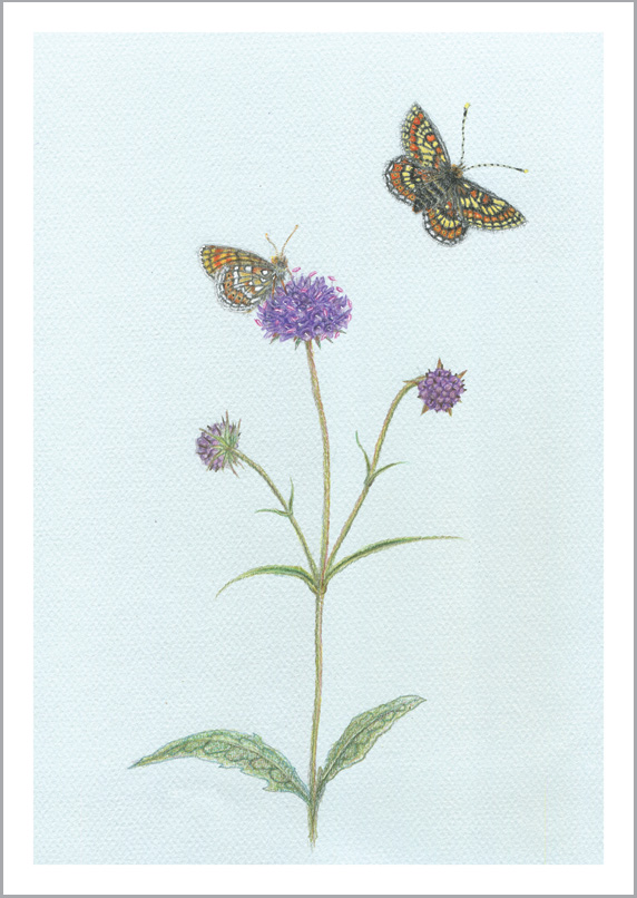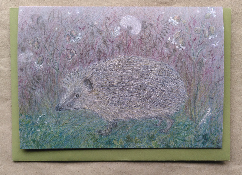 This month I've added some lovely new stockists, who you'll see on my Stockists page. I've also added some new cards and some new printings of existing cards. Above is one of the new cards, Muslin Moths. Muslin Moths are beautiful little moths which, despite their name, don't eat fabrics! Their caterpillars feed on a range of plants including dock and ribbed plantain. The female is white with black spots as though she's wearing ermine. The male is a beautiful soft buff colour.