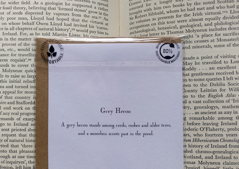 I use PLA - cornstarch-based cellophane - for packaging my greetings cards, and have done so since I started selling cards in 2003. PLA is biodegradable in municipal composting (so, your brown bin if you have one). I use recycled paper for my cards, and recycled envelopes where possible. I chose these materials because it was important to me personally that my cards were as eco-friendly as they could be. There's now increased interest in the environmental credentials of the things we make and buy, so this month I switched to PLA cellophane which is printed with a small message that lets people know that it is compostable and also that it's made from a sustainable material.