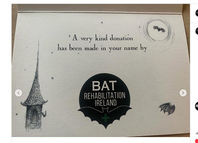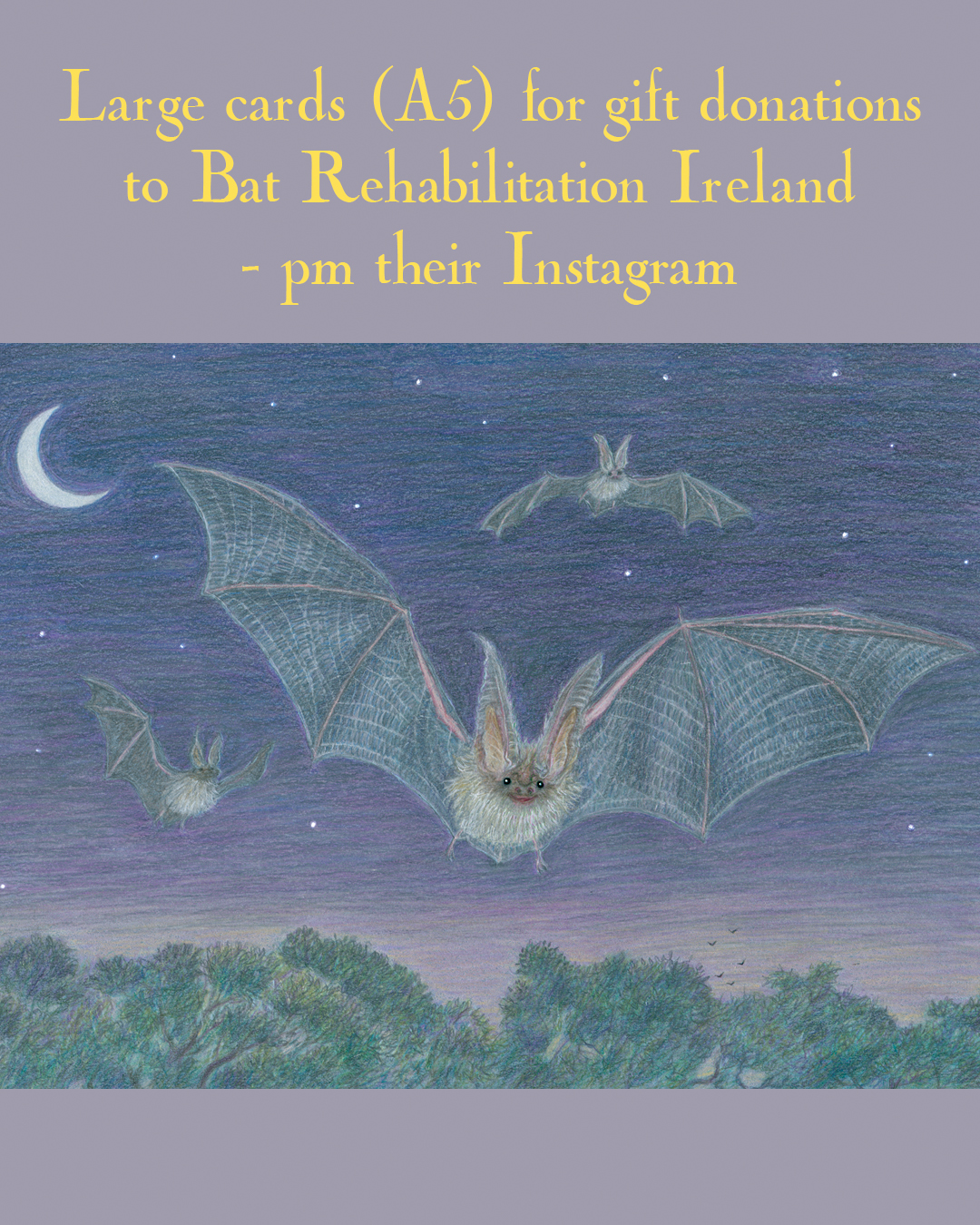 I was delighted to make these A5 cards for Bat Rehabilitation Ireland. They are for gift donations so if you know someone who loves bats, this could be a lovely Christmas present for them. You can contact BRI through their website or Instagram to buy one.