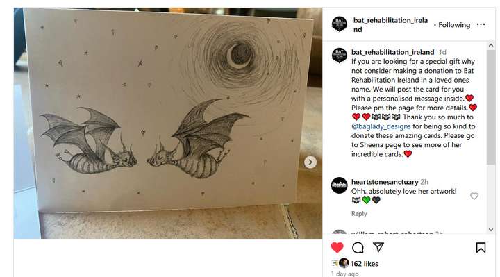 This month I made these gift cards for Bat Rehabilitation Ireland, and you can buy them by DMing Susan on the BRI Instagram. Bats are such fascinating little creatures and I think these cards make thoughtful and unique gifts. I marvel at the hard work done by organisations like BRI to protect Irish wildlife.
